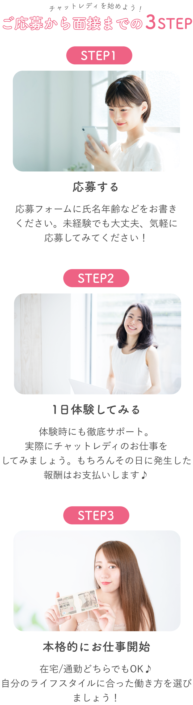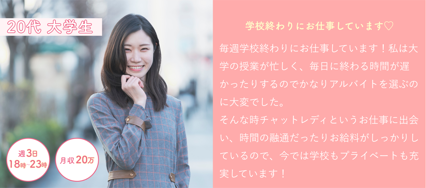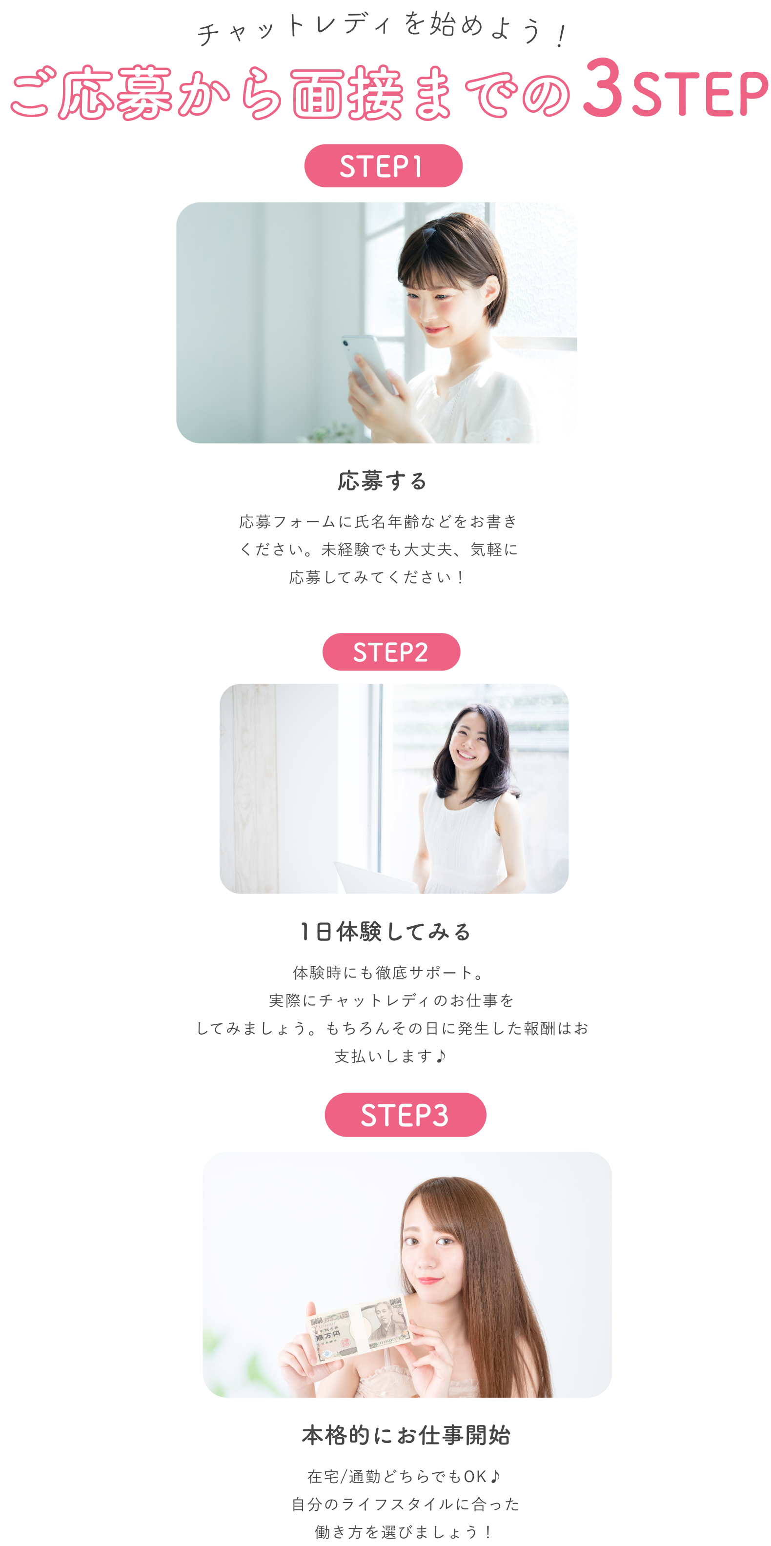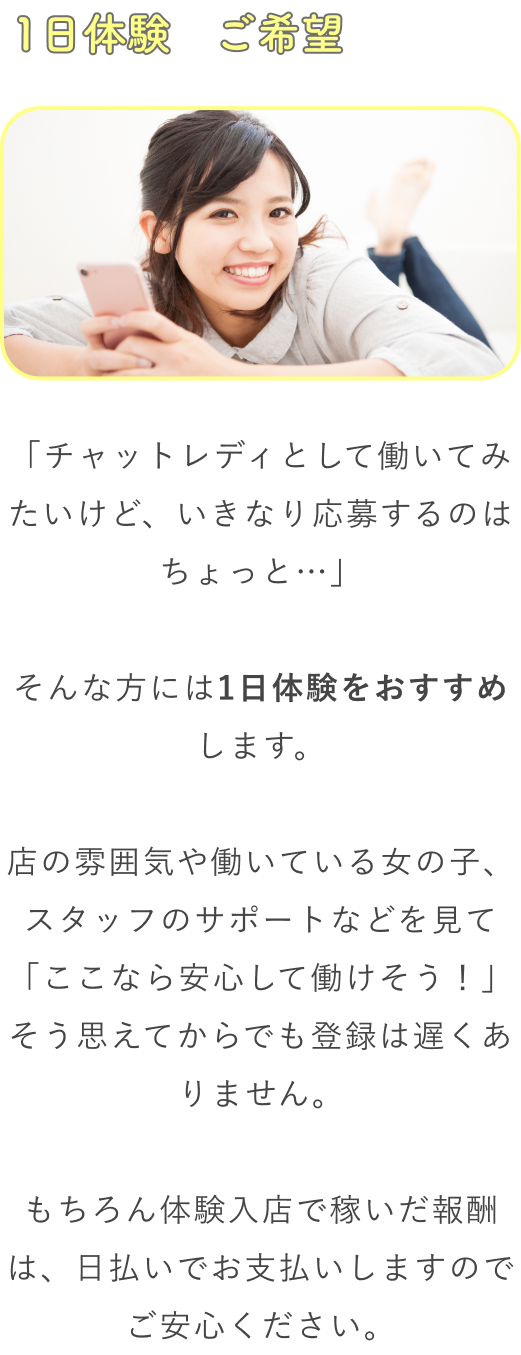 チャットレディとは、専用の会員サイトを通じて男性とパソコン越しでお話をして頂くお仕事です。リモートでの接客なので「男性と直接会うのは少し苦手...」という方でも楽しく働けます。