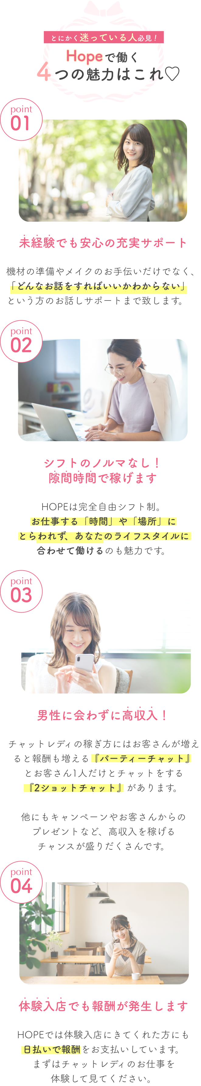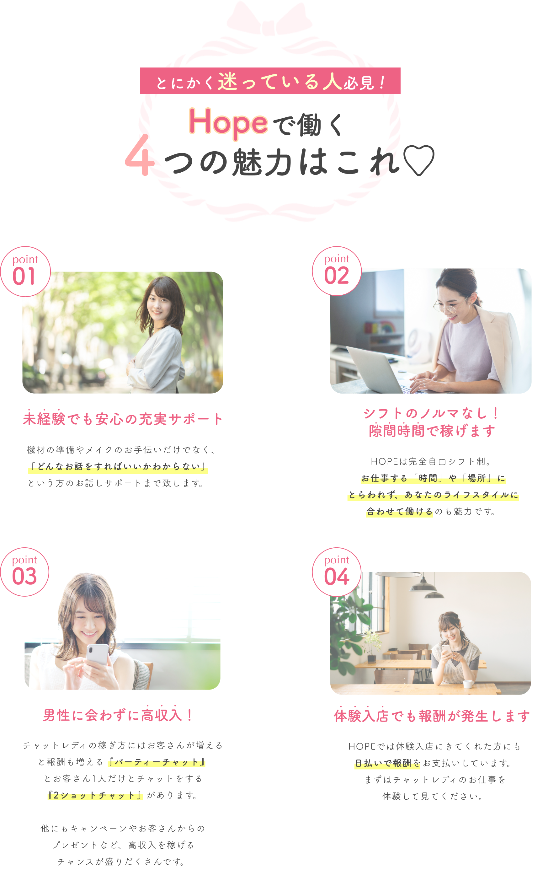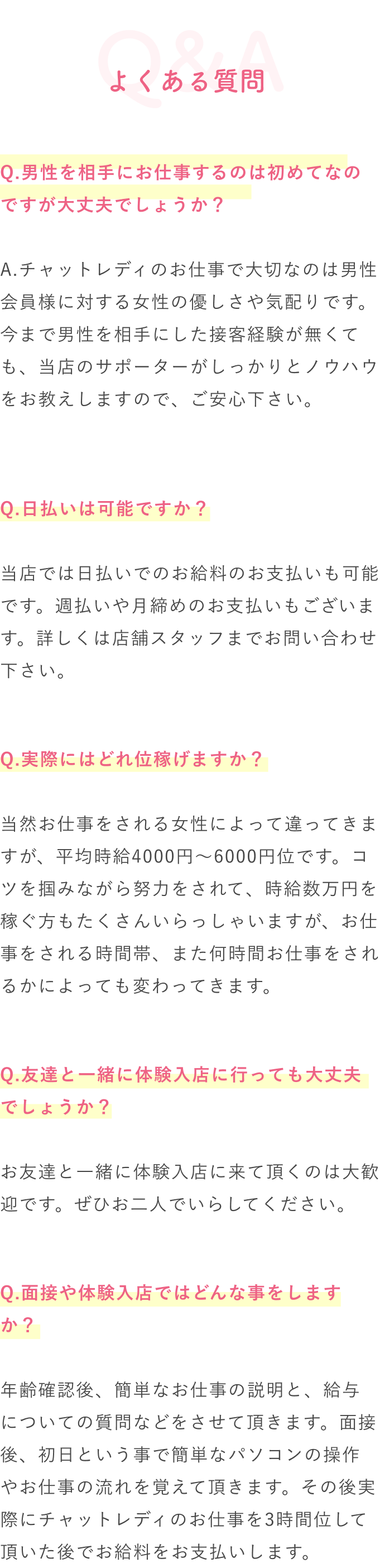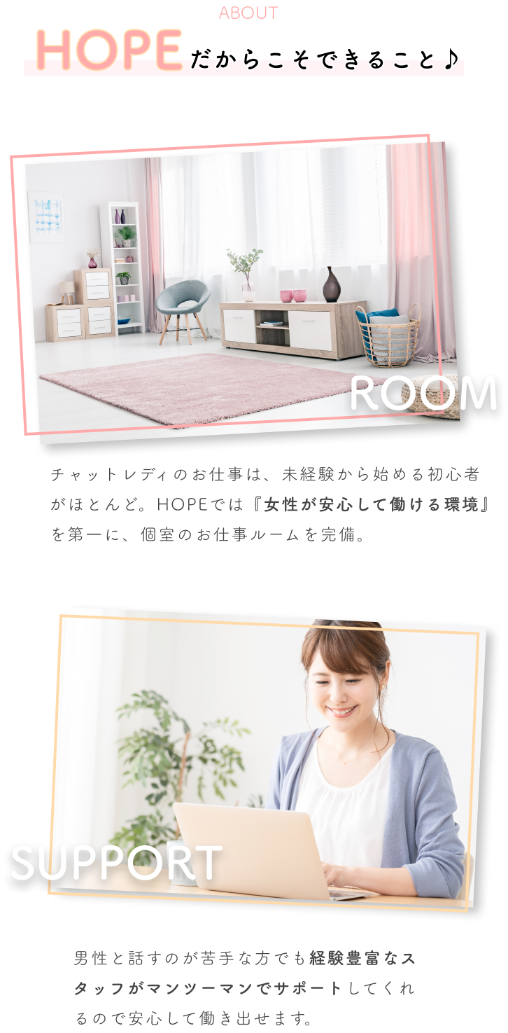 チャットレディとは、専用の会員サイトを通じて男性とパソコン越しでお話をして頂くお仕事です。リモートでの接客なので「男性と直接会うのは少し苦手...」という方でも楽しく働けます。